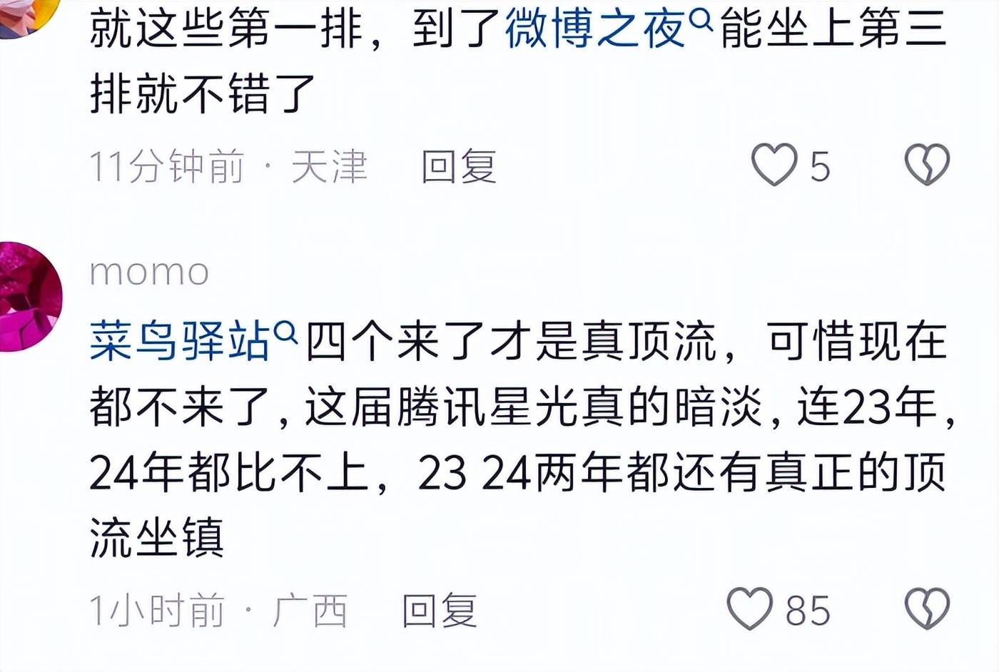 今年整个星光大赏一个大咖都没来,阵容整体降了级,今年当主咖的赵露思放在去年也只是配角,所以座位完全没变也就等同于降咖了。