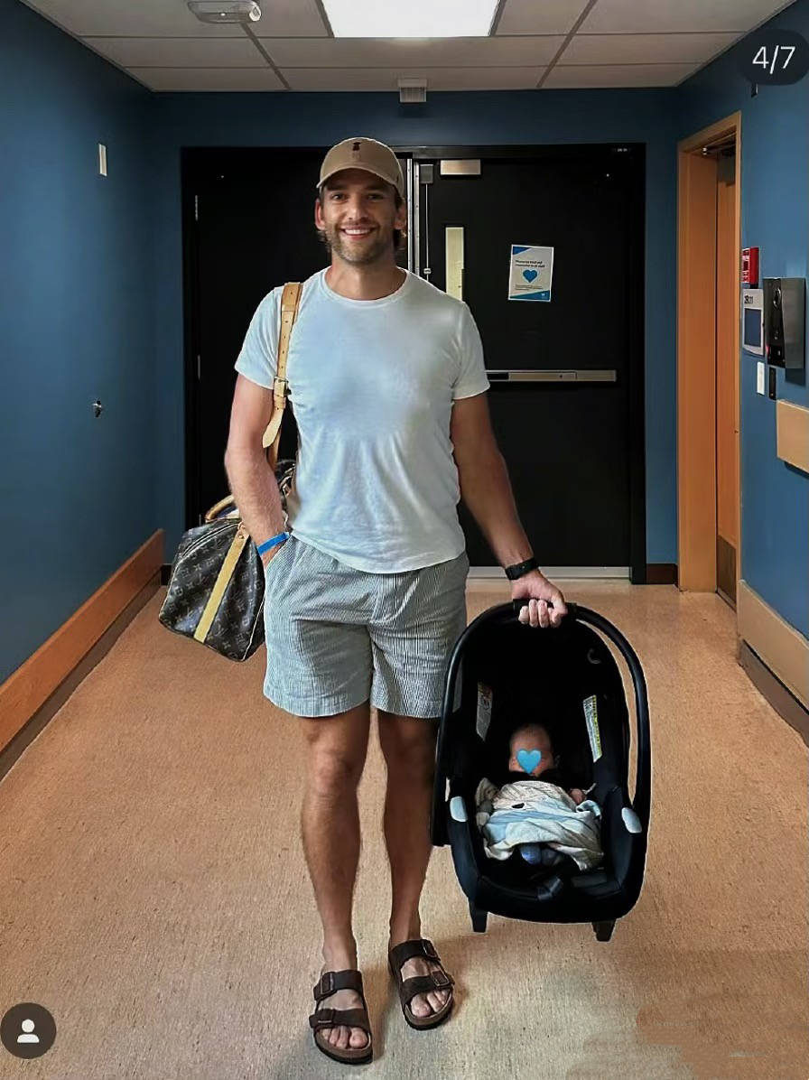 男友Mathew在谢婷婷产后,更是担起了带娃的责任。出门的时候,会提着婴儿篮、推着婴儿车,也会在适当的时候抱娃喂奶。