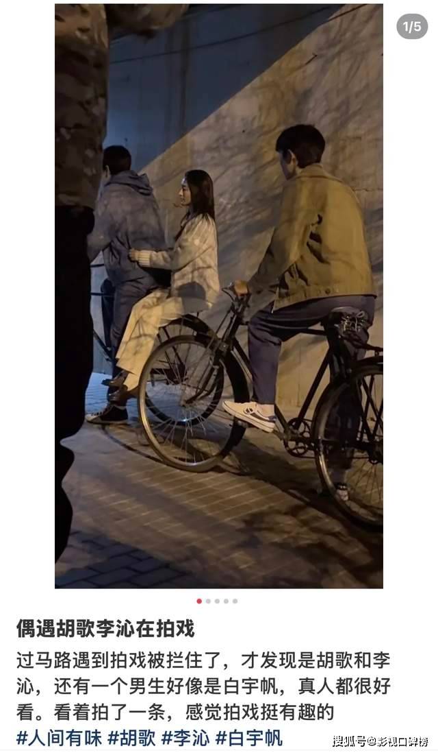 前脚刚刚官宣开机,马上就有网友在北京街头偶遇胡歌和李沁拍新剧《人间有味》。路透照看到胡歌非常潇洒,蹬着自行车后面载着李沁。不看到实体照片还好,这一看见照片,观众们的讨