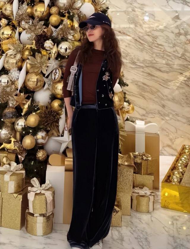 尤其是身上穿的那件刺绣天鹅绒背心,再搭配自己棕色的大波浪,无疑是把自己的年纪给拉高了很多。