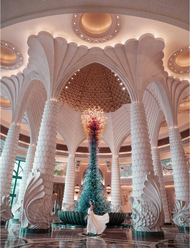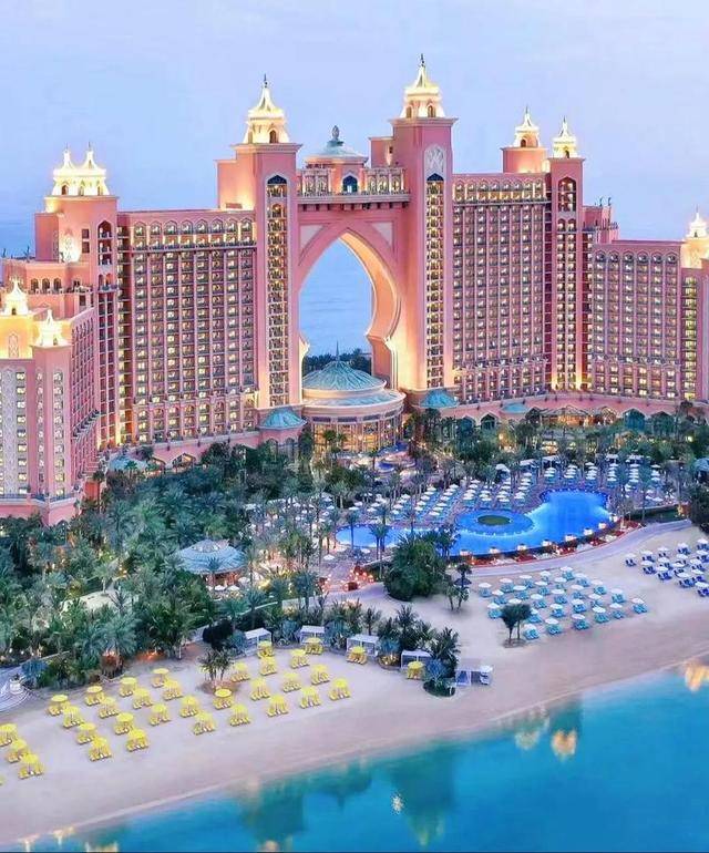 酒店以传说古国亚特兰蒂斯为主题,配备中东最大水上乐园及饲养6.5万条鱼的巨型水族馆,并提供海豚互动项目。在这里基础房型每晚价格约800美元(约合人民币5700元),而高端套房可达数万美元。
