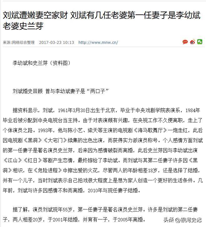 比起事业的顺风顺水,刘斌的感情生活格外波折,他一辈子结了三次婚,均以离婚收场。