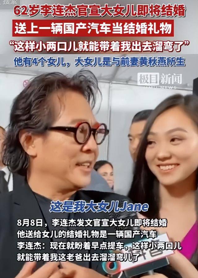 今年8月,李连杰还高调公布了大女儿结婚的喜讯,特意送了一辆大女儿喜欢的新车,父女俩相处得十分和睦。