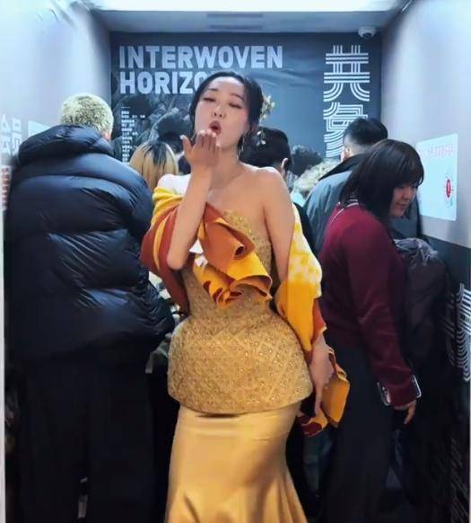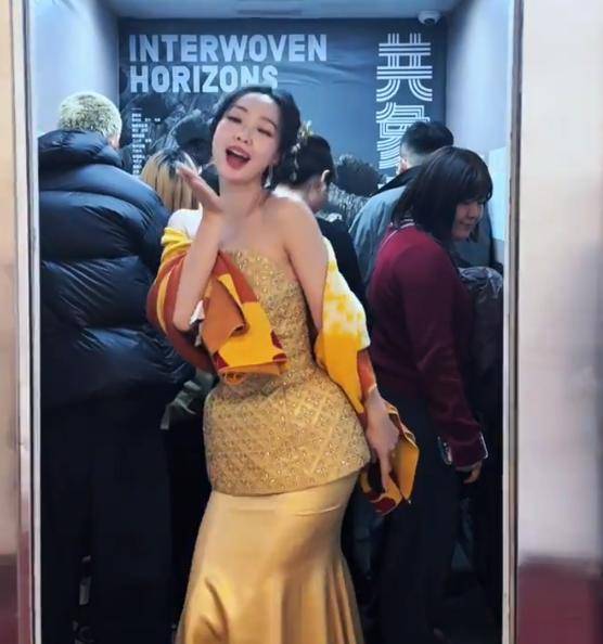 这大大咧咧的性格,真是讨人喜,难怪管乐会如此受欢迎,而且进入电梯的时候,管乐立马踢了一下裙摆,而后摆出了POSS,嘴里还大喊着“拍吧”,动作行云流水一气呵成。