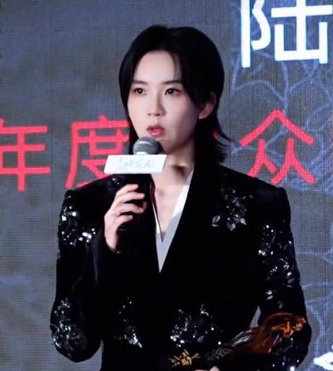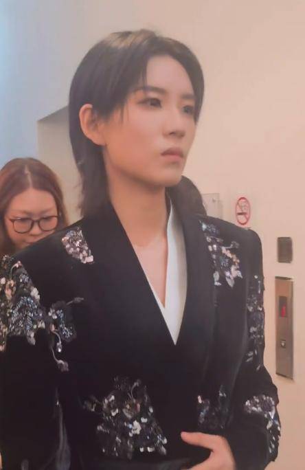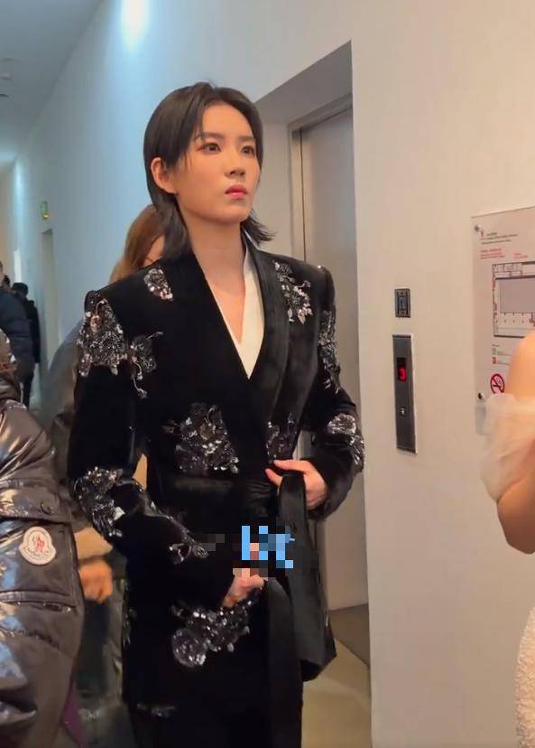 陆柯燃真的很适合中性装扮,很少有女星能把短发呈现的如此飒爽,深V领西服,一脸冷酷的模样,身材高挑利落,犹如鹤立鸡群。