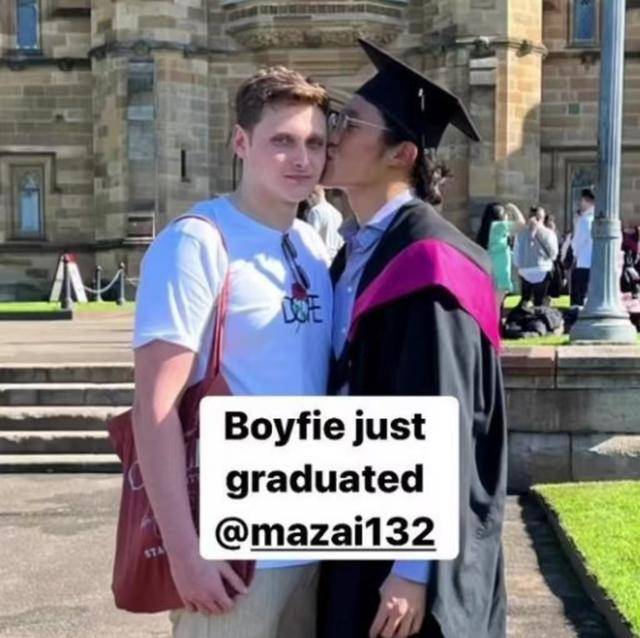 毕竟马在骧也不是第一次引发性取向问题的猜测,正如前面说到,马在骧曾在澳洲完成学业后,因为毕业时很是喜悦,就转发了一张与外籍男性好友的合照,照片中马在骧开心地亲吻了对方的脸颊。