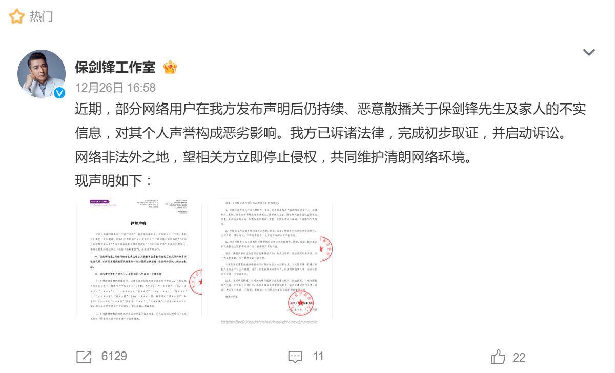 演员保剑锋这次没在戏里“黑化”,却在现实中拿起了法律武器。12月26日,其工作室一纸律师声明,宣布已对网络上的出轨等谣言完成取证并正式起诉,把一场私生活争议直接