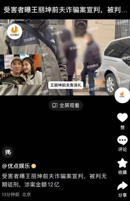 最近,王丽坤前夫詹浩礼因合同诈骗涉案金额超12亿元,于2025年12月26日被法院一审判处无期徒刑。