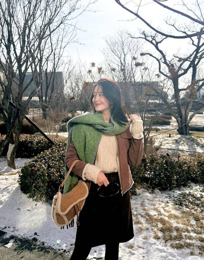 12月26日杨采钰晒出的这组生活照,直接把冬日氛围感拉满!从镜头中可以看到她站在覆盖着残雪的室外,阳光温暖地照射在她身上,使她的整体状态达到了巅峰。她身穿一件焦糖色的麂皮