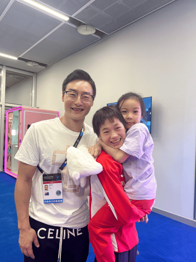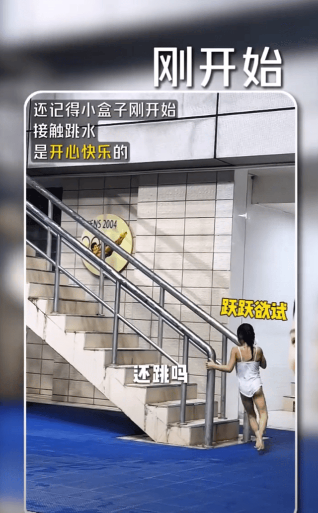 身为体二代,爸爸秦凯和妈妈何姿都是很优秀的跳水运动员,小盒子有遗传到父母跳水基因,她从24年4月正式开始跳水训练。刚开始接触跳水的小盒子是开心快乐的,从几米高的跳台跳下完全不再怕的。
