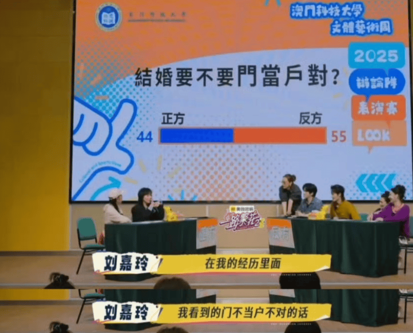 刘嘉玲作为正方一辩,一开口就是“王炸”:“戴安娜王妃和查尔斯王子,这算不算门不当户不对的典型?一个满脑子爱情与自由,一个被传统束缚得像木乃伊,最后还不是以离婚收场,这悲剧还不够明显吗?”她还不忘“翻旧账”,拿自己当年和许晋亨的豪门虐恋当例子:“当年他爸妈觉得我是‘戏子’,直接否认婚期,我的豪门梦碎得比玻璃渣掉地上还干脆!”