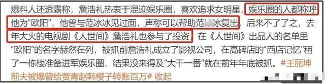 也有人爆出詹浩礼与王丽坤结婚后,照样出去嫖娼,对象都是演艺圈的小明星。