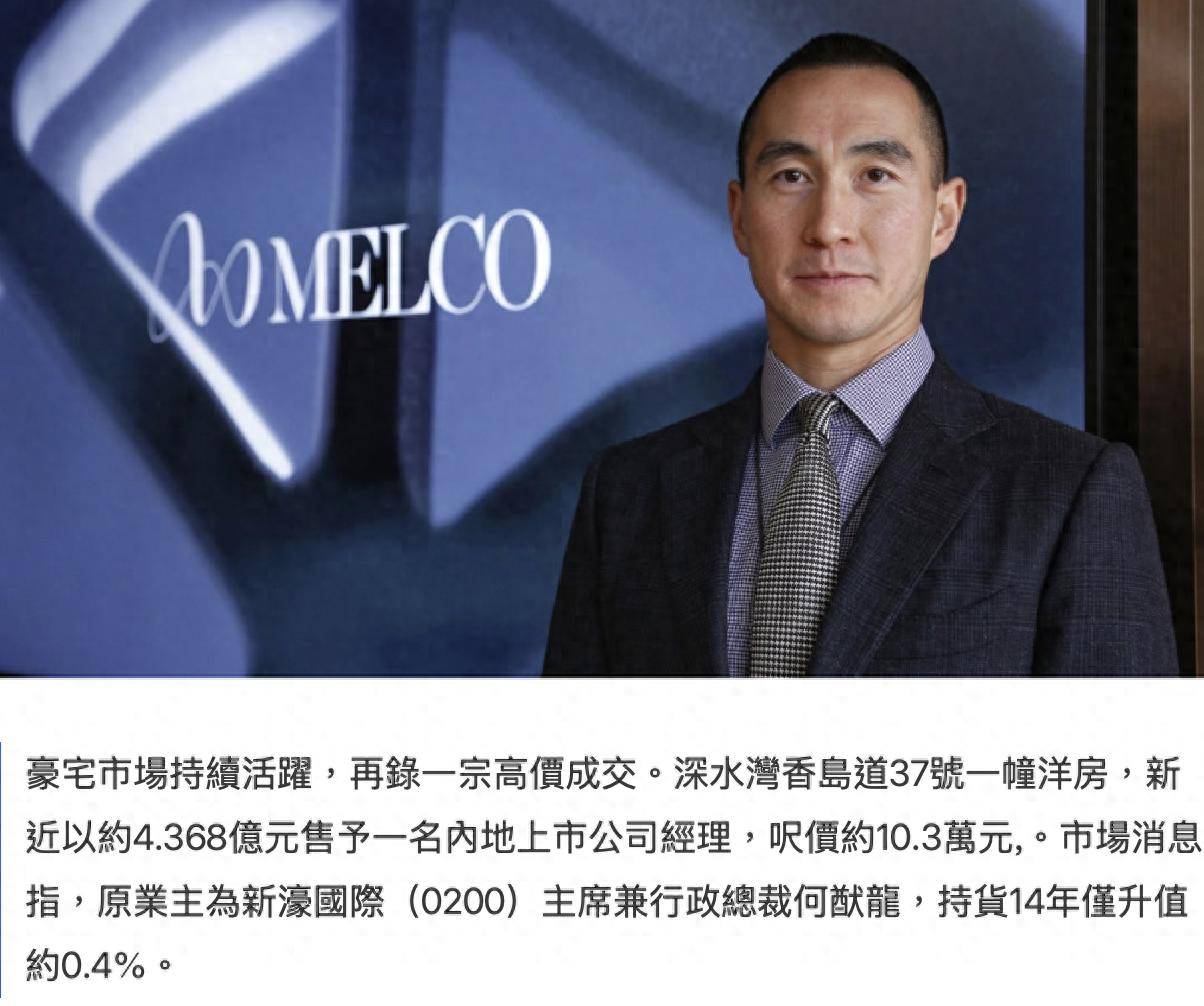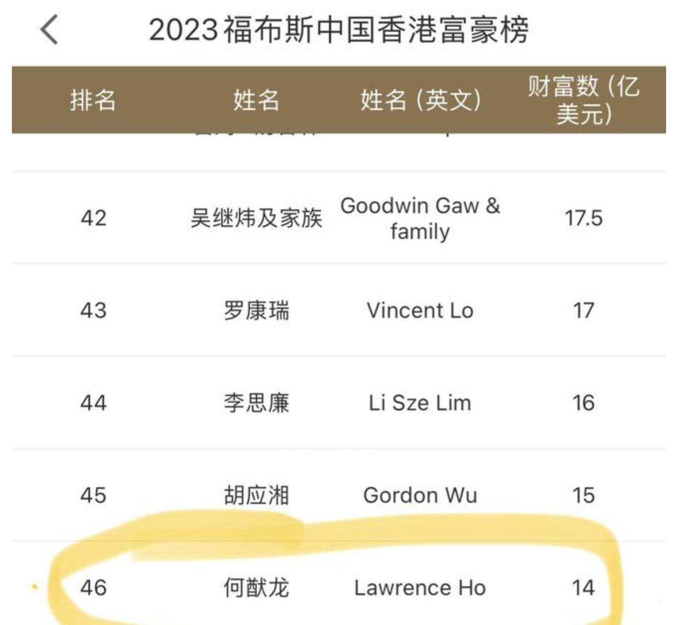 何猷龙卖出持有14年的洋房,账面仅赚180万,在商言商,这不是一桩成功的房产交易,如果不是急着套现,大概也没有必要在获利那么低的情况下出手,至于背后的商业目的是什么,这就不得而知了。不过何猷龙这几年在发展上的确是不如从前那么迅猛,从他接连两年都跌出香港富豪榜的前50的排位就可想而知。何猷龙上一次出现在福布斯香港富豪榜是在2023年,当时他以14亿美元的资产排在第46位,而2025年福布斯香港富豪榜第50位的资产也是14亿美元,何猷龙没有上榜,说明他的资产逐年下滑,已经在14亿美元之下了。