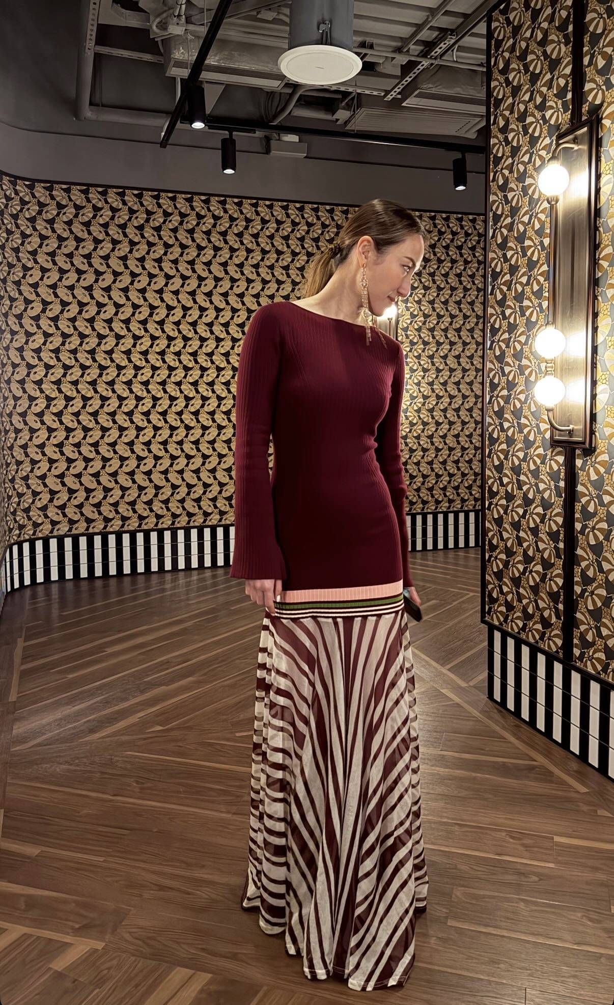 何超云晒出了平安夜约会的照片,她所在的是一家精致的私人西餐厅,餐厅的装潢十分精致、典雅。因为是私人餐厅,所以环境清幽,适合约会、聊天。当晚何超云可是盛装出席,穿了一袭酒红色的长裙,裙子的上半身以修身设计为主,下半身混搭了斑马纹的裙摆,整体看起来十分有个性。何超云化了一个很精致的妆容,还佩戴了一对有着长长吊坠的耳环,头发也梳得一丝不苟,整个人既贵气又大方——这些年难得看到何超云有如此精致的打扮,还别说颜值是真的很高,美艳动人。