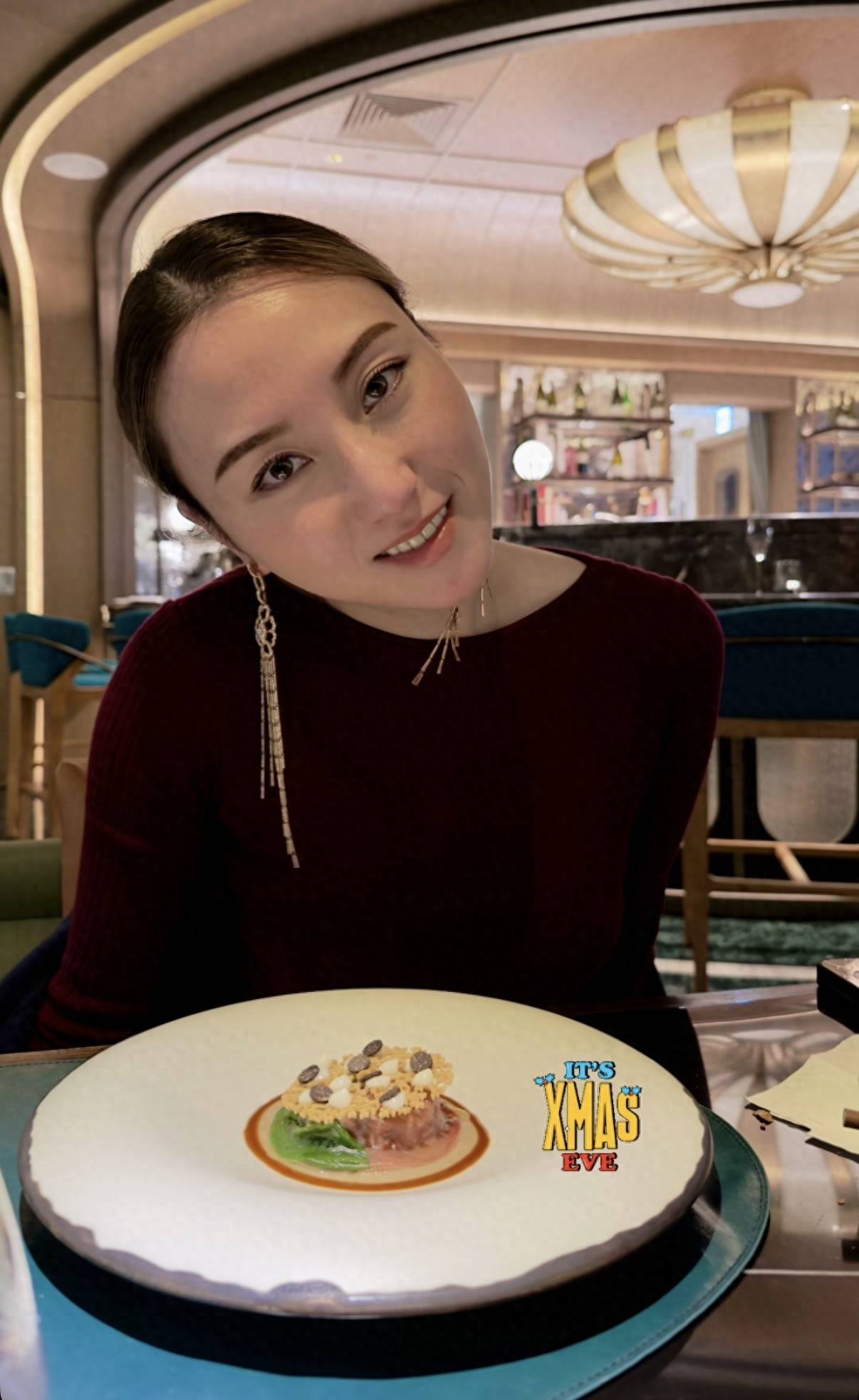 何超云做这么精致且隆重的打扮,是出于对于场合的尊重,毕竟吃的是高级西餐,在穿着打扮上有其特殊性。而从何超云晒出的食物品相来看,精致又漂亮,很讲究摆盘效果,可想而知餐厅的价格必然不菲。除此之外,那么隆重也在于,用餐的对象应该也不是寻常人。所谓女为悦己者容,如果只是寻常朋友的圣诞聚会,也没有必要那么精心,更不需要以那么高规格的状态示人。事实上,何超云做如此精心的打扮,又选择了一个这么有情调、浪漫的餐厅,再次证明约会的对象不是普通朋友,大概就是新男伴。