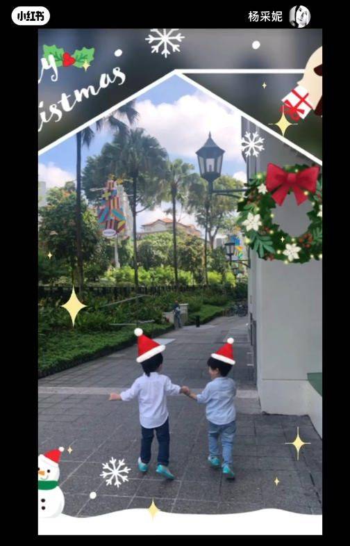 为了庆祝账号开通和圣诞佳节,杨采妮大方分享了一段家庭视频。镜头里,她那对8岁的双胞胎儿子成了绝对主角,两个小家伙在家里奔跑嬉戏,活力十足。一家人共同装饰巨型圣诞树的画面尤其温馨,杨采妮感慨孩子们长得太快,以前还需要爸爸抱着挂饰品,现在身高都超过她肩膀了,还能主动帮忙组装圣诞树。兄弟俩手牵手在户外散步的画面,更是萌化了不少网友的心。