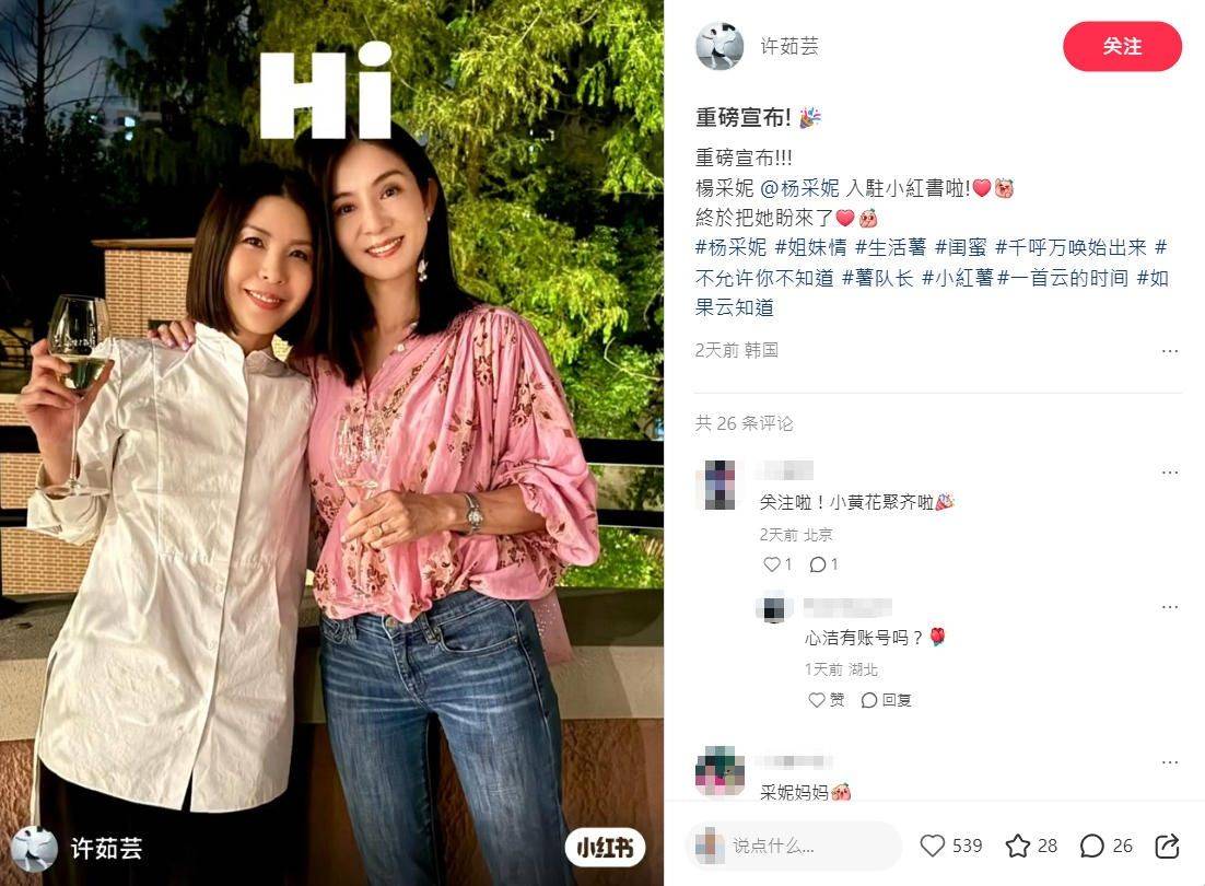 更暖心的是,好姐妹许茹芸看到杨采妮开通账号后,立刻发文欢迎她的加入。短短一句互动,却透露出两人多年不变的深厚友情,为这次“回归”增添了不少温度。
