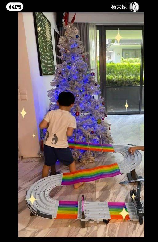 这段视频还意外曝光了杨采妮在新加坡的豪宅内景。复式结构搭配气派楼梯,全屋铺着高雅大理石地板,客厅的落地玻璃门直接通向私人花园,采光极佳。最让人惊叹的是,宽敞的客厅地板上竟摆着一套大型《马里欧赛车》彩虹赛道玩具,瞬间把豪宅一角变成了孩子们的“赛车场”。即使放了这么大面积的玩具,空间依然显得很充裕,可见居所相当奢华。