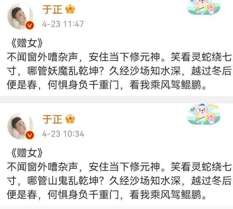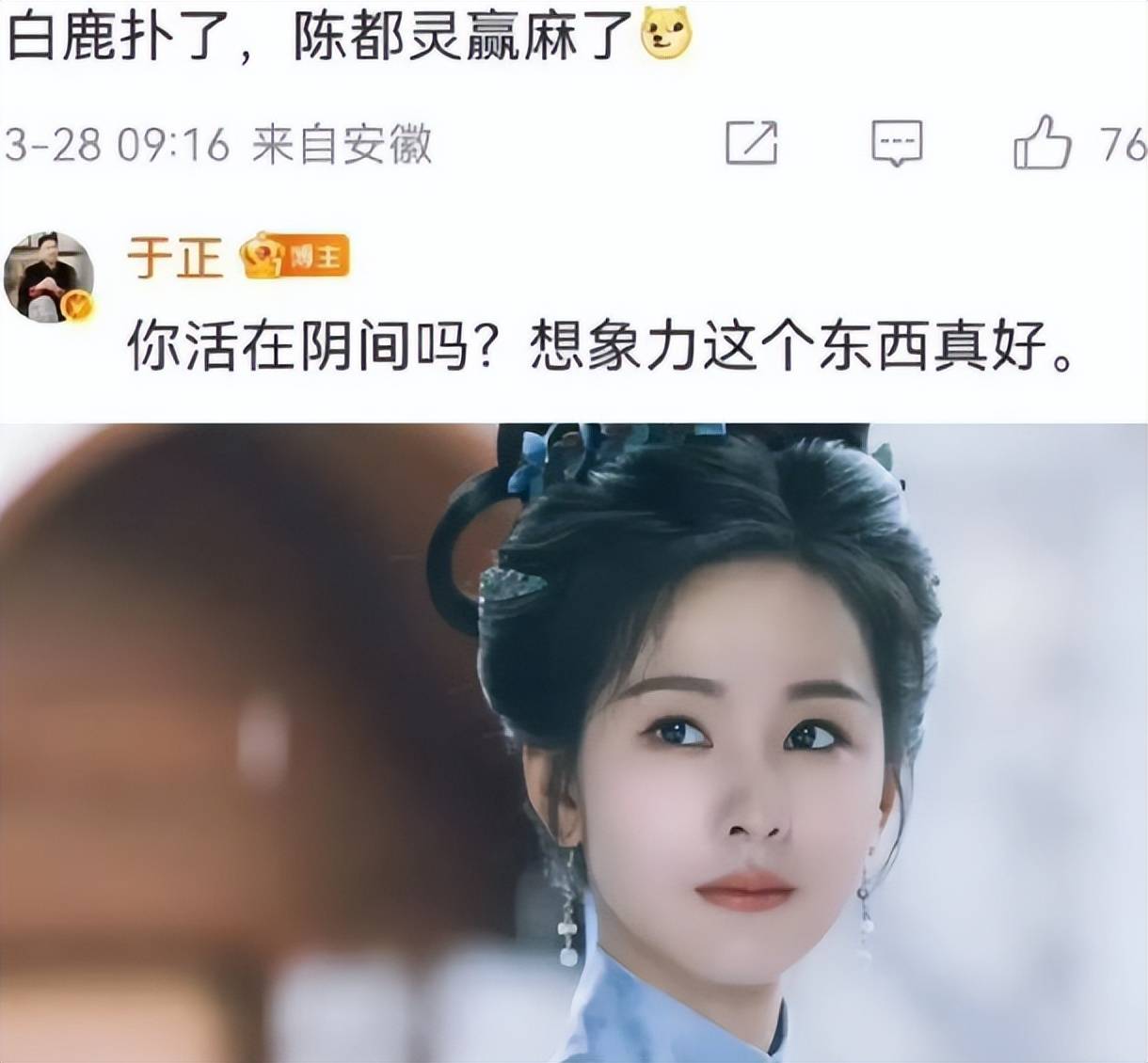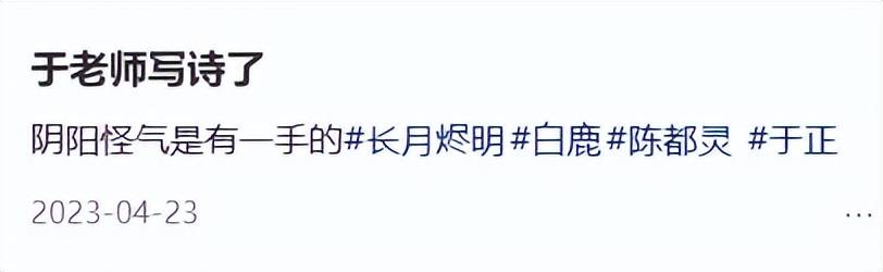 白鹿的老板于正还写诗疑似暗讽陈都灵,就差直接点名。
