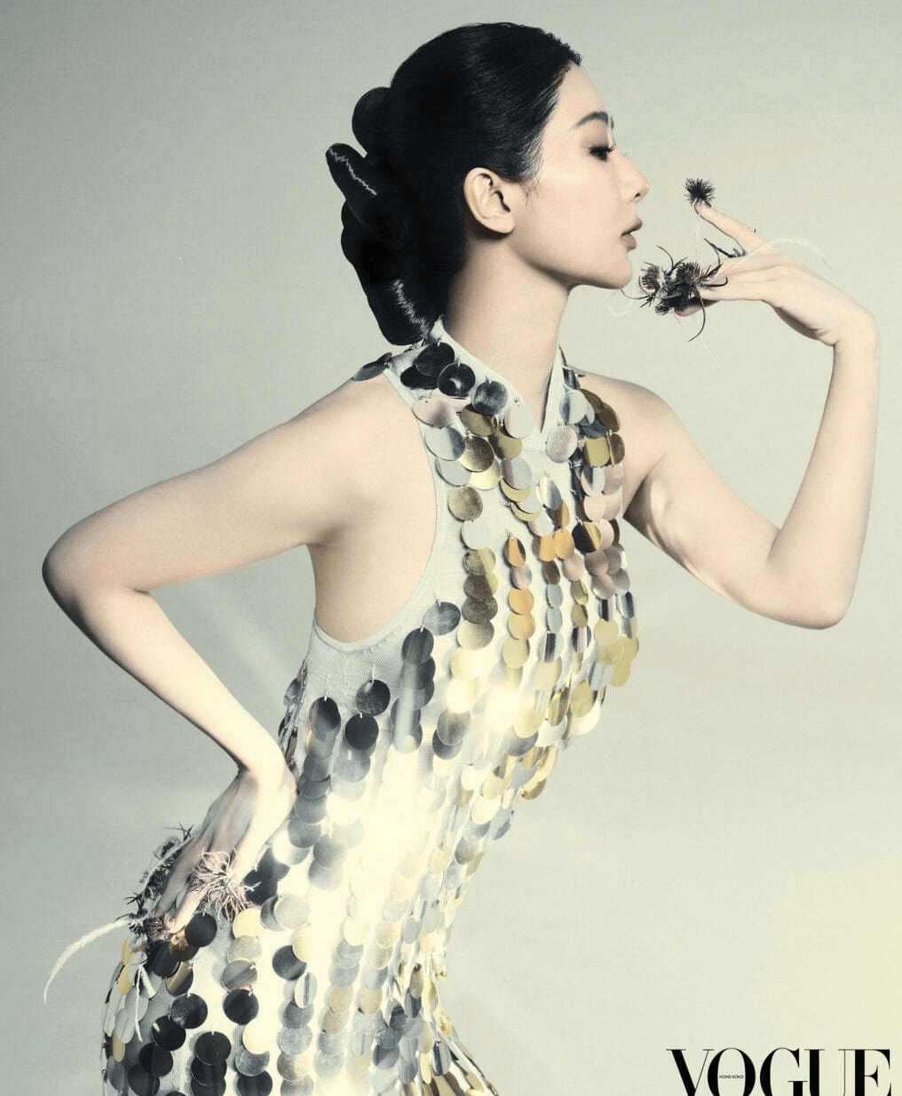 那么时尚表现呢?杨幂素有带货女星的称号,但是这本封面的时尚感差了一些。从造型可以看出她挑战很大,比如大光明盘发和素净妆容,把五官和肢体都展露得彻底,然而肢体的表达能力欠缺,过于夸张显得用力过猛。