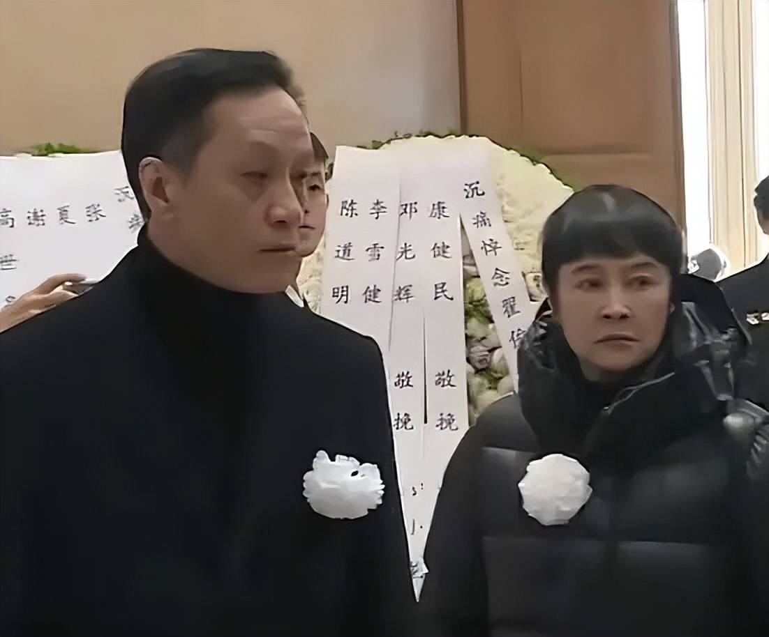 告别仪式上,看到了冯远征梁丹妮夫妇。他们都穿着黑衣,神情肃穆,胸前戴着白花,眼睛红肿,像是睁不开一样。