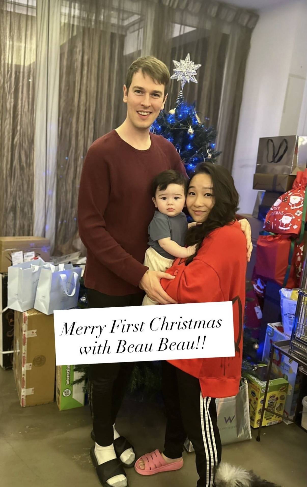 她发照片的时候写了句“First Christmas”,是替宝宝说的。这一年他们家真是喜事不断。她姐去年结婚生了女儿,她今年也结婚生了儿子,俩宝宝差了不到一年,现在梁家辉一下多了两个外孙。