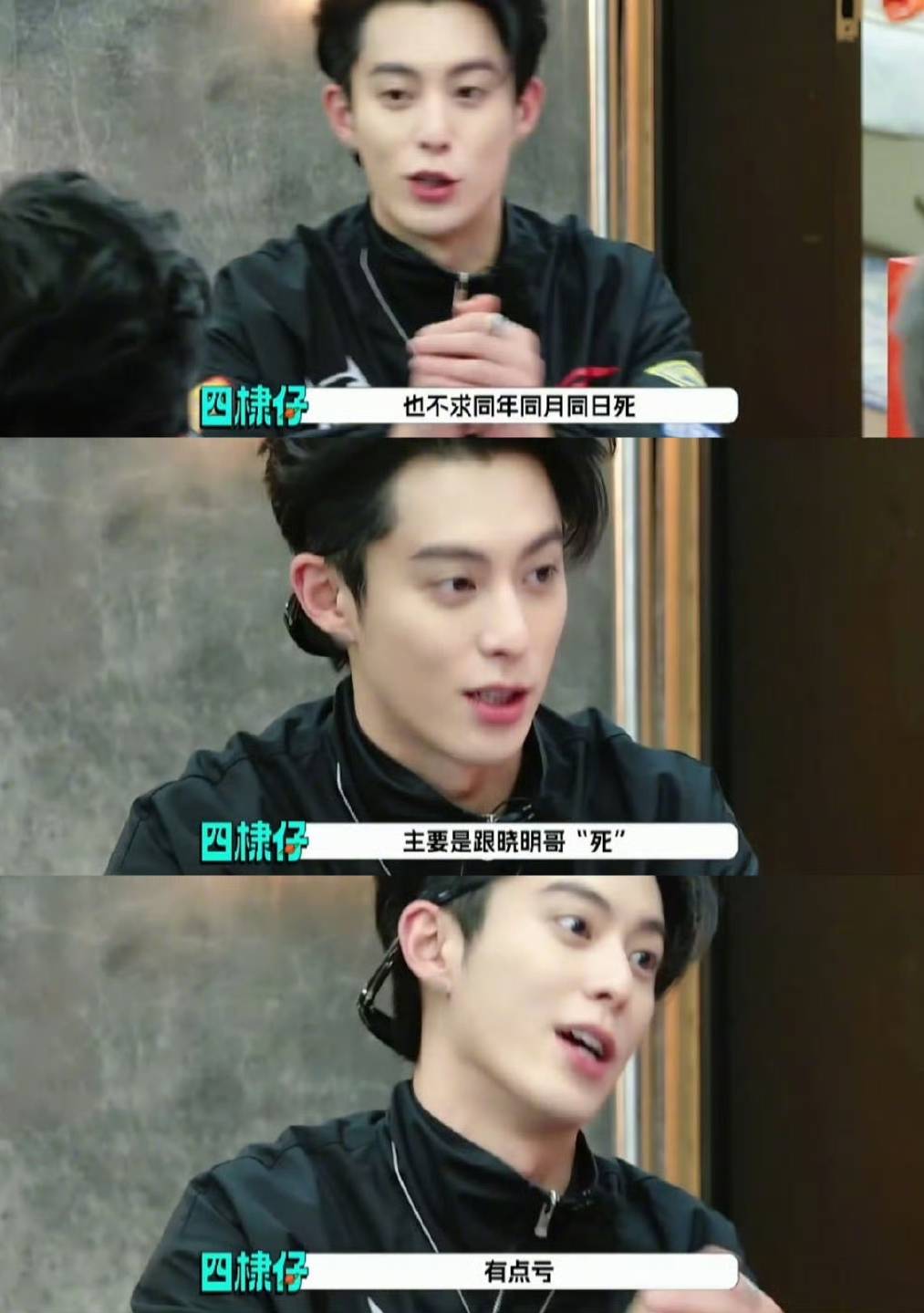 节目伊始,王鹤棣便展现出了他“搞事情”的天赋。当众人讨论起结拜兄弟的话题时,他一本正经地拉着大家起誓,却在关键时刻来了个神转折:“不求同年同月同日生,也不求同年同月同日死……”正当大家以为要进入煽情环节时,他话锋一转,补刀道:“主要是和晓明哥一起死有点亏。”此言一出,四座皆惊,随即爆发出哄堂大笑。这不仅是对传统影视剧里那些“义薄云天”誓言的解构,更是对黄晓明那种自带“大哥”光环气场的精准打击。没有刻意的冒犯,却字字珠玑,让人哭笑不得。