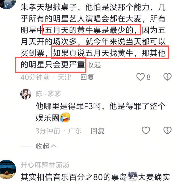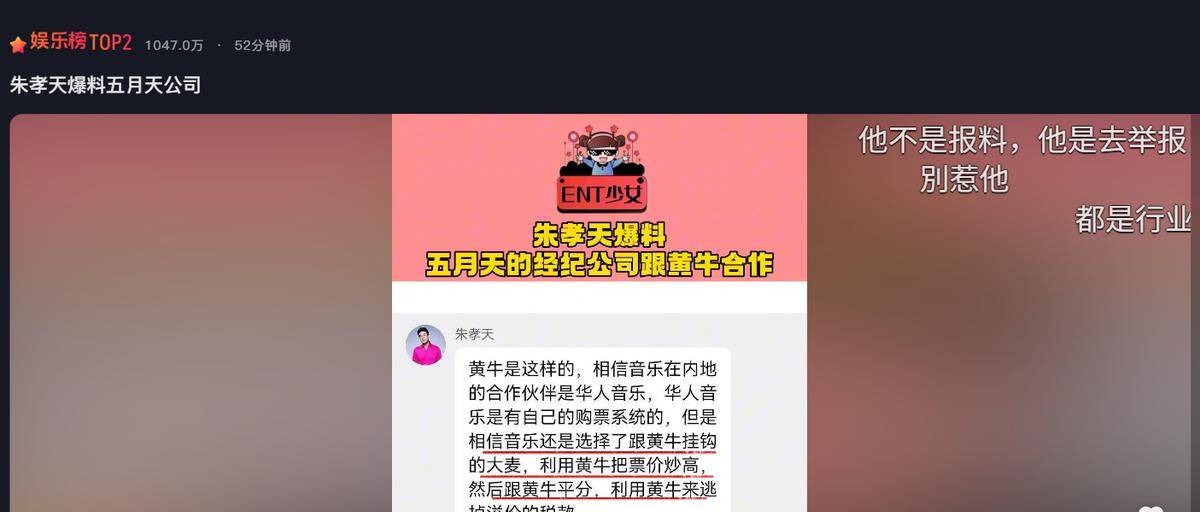 最近朱孝天疑似又在网上作妖,多张他在聊天群的爆料截图曝光,每一张都是大瓜,指控五月天及公司假唱、逃税、勾结黄牛卖票。如果爆料为真,都到了足以封杀五月天的地步,目前爆料已