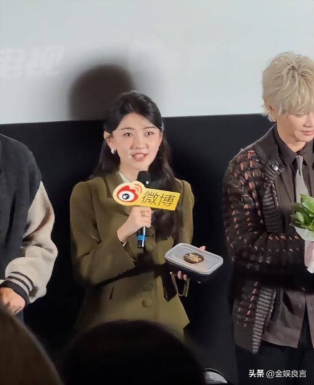 在互动环节中,她被几位男演员照顾得很好,不管是合影还是做游戏,都被护在中间,妥妥的“团宠”待遇。