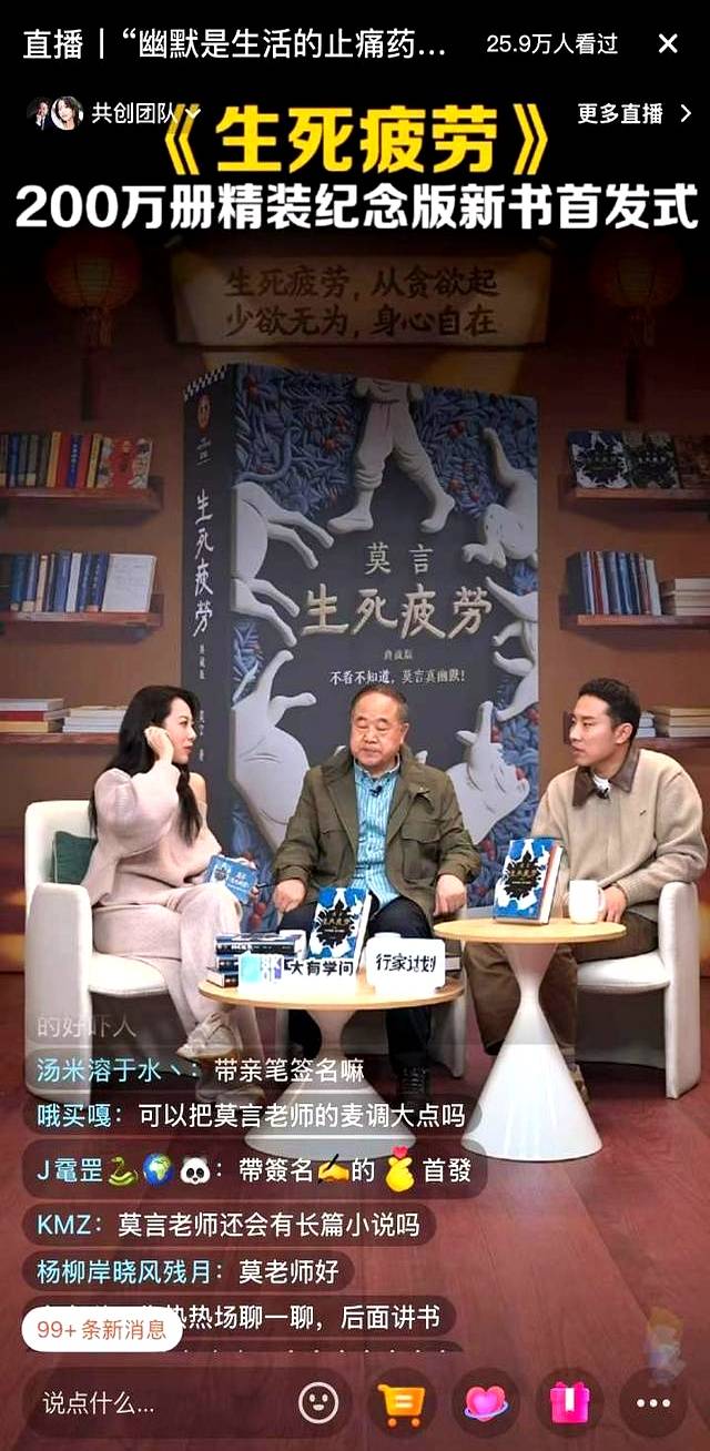 想象一下,直播间里,莫言与徐志胜坐在一起,面对镜头,神情轻松。