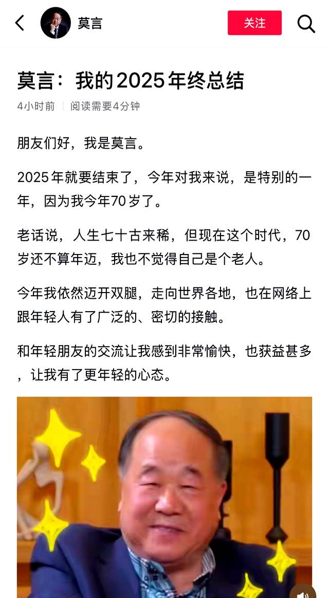 这一变化让他自己都感到惊讶:“我以前从不觉得自己会在镜头前讲述生活,但如今,这成了我与年轻人沟通的桥梁。”这段话引发了观众的共鸣,许多人在社交平台上表示,看到莫言的一面,仿佛看到了自己生活中的小确幸。