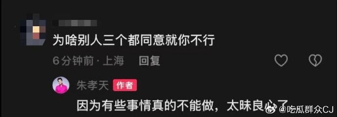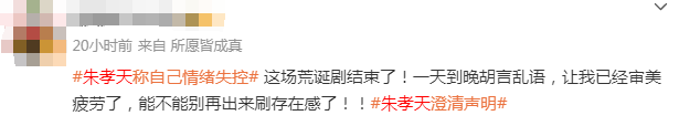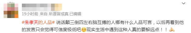 这场闹剧算是结束了,但网友对朱孝天的声讨并没有停止,甚至上升到了“他哪有什么人品可言”、“以后再看到他说什么只会觉得可信度极低”、“现实中遇到这种人真的要躲远点”。