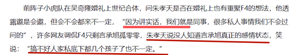 跟言承旭一起上综艺,他能当着人家的面说F4确实不和,后来找补了一句,也是说他们其实没有和与不和,因为生活没什么交集,只不过是同事而已。