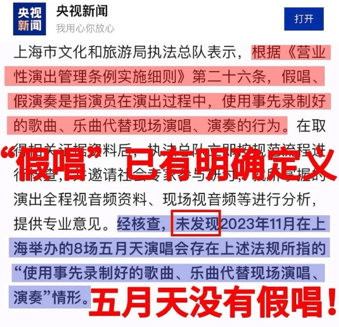 五月天倒是曾经陷入过假唱风波,但上海文旅局在2023年就曾经认定,五月天演唱会“无假唱行为”。