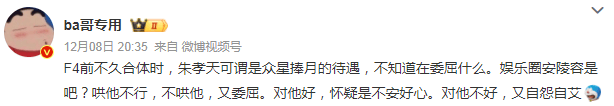 本来F4年底巡演人没凑齐,大家刚开始还挺遗憾的,但一路吃瓜过来,绝大多数网友已经在嘲朱孝天,说他“闹够了没有”、“能不能别出来刷存在感了”。