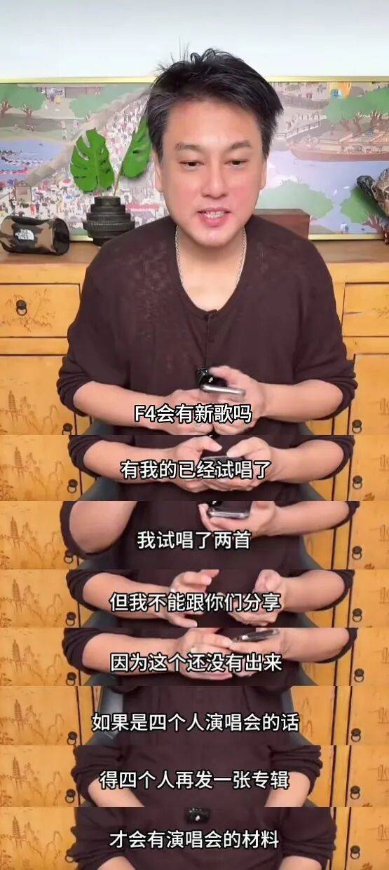 他觉得F4作为青春符号,不必以合约捆绑,但他能够理解F3选择合体活动,也会送上祝福。他自己对于四人合体仍有期待,等四人意向完全达成一致那天,就会带来这场“青春售后服务”。