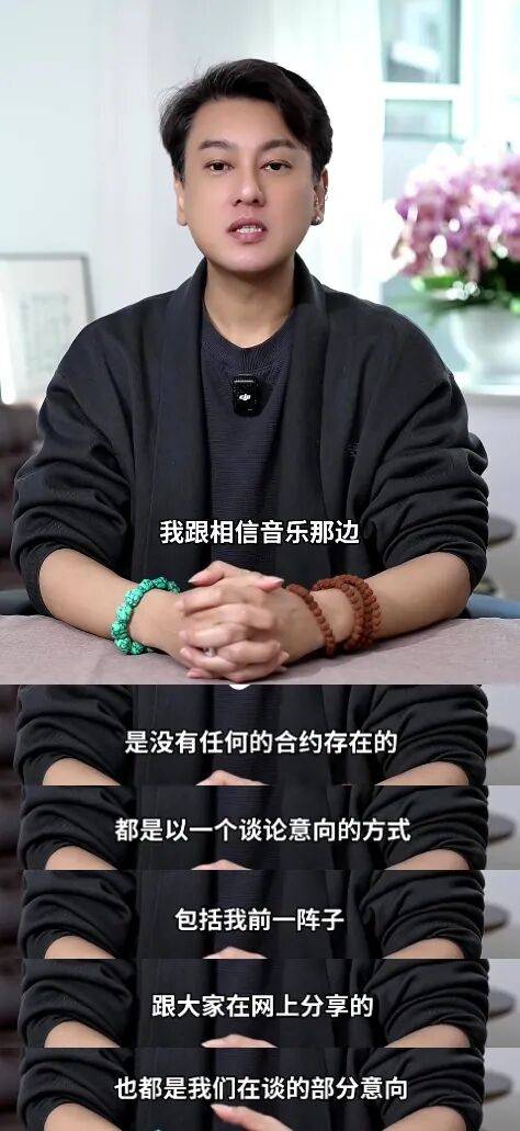 他说自己和相信音乐并没有签约,只是在聊意向,他在直播间里说的也是合作意向,而不是合约内容,所以不存在泄密。他几个月之前拒绝了对方的三个要求,就被单方面切断了联系。