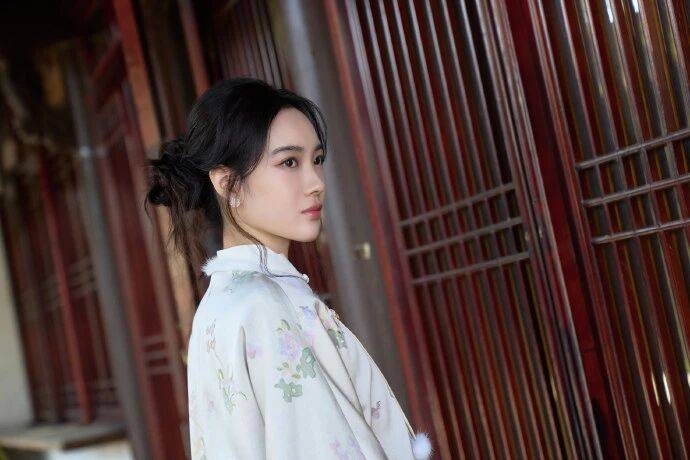 她穿着淡米色毛绒上衣与紫色长裙形成冷暖色调的和谐碰撞,毛绒软糯质感打破传统中式面料局限,赋予造型“甜暖”气息;她换上紫色长裙采用新中式剪裁,飘逸灵动,光影下更显雅致,美得惊人。