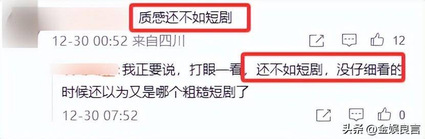 网友一句“质感不如短剧”更是直接戳中该剧痛点,他哪里懂什么审美,完全是在消耗自己的口碑。