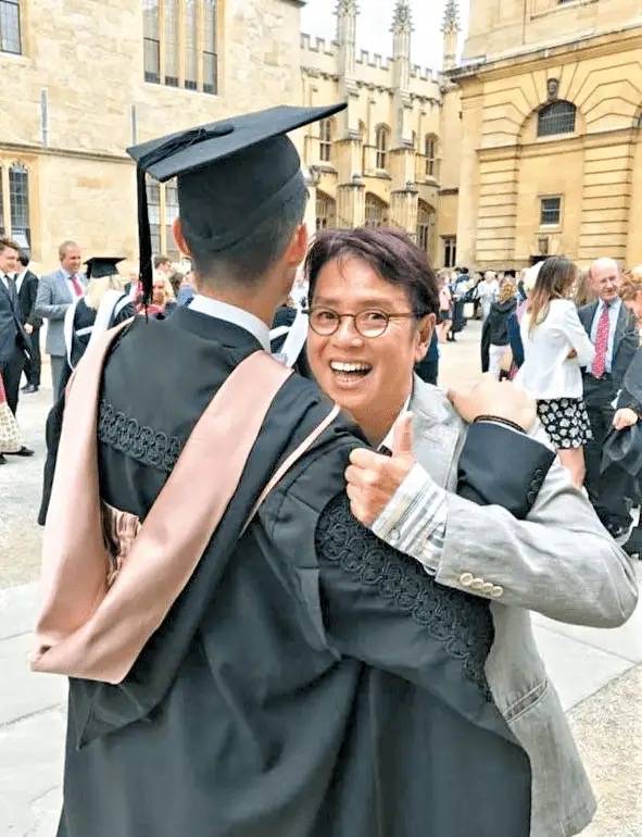 谭咏麟还亲自出席了儿子的毕业典礼,他感谢了朱咏婷对儿子的教育和照顾。父子俩抱在一起的画面,太温馨了。