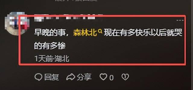 网友戏言:“森林北也是早晚的事儿!现在笑得多高兴,以后哭的时候就会有多惨”!
