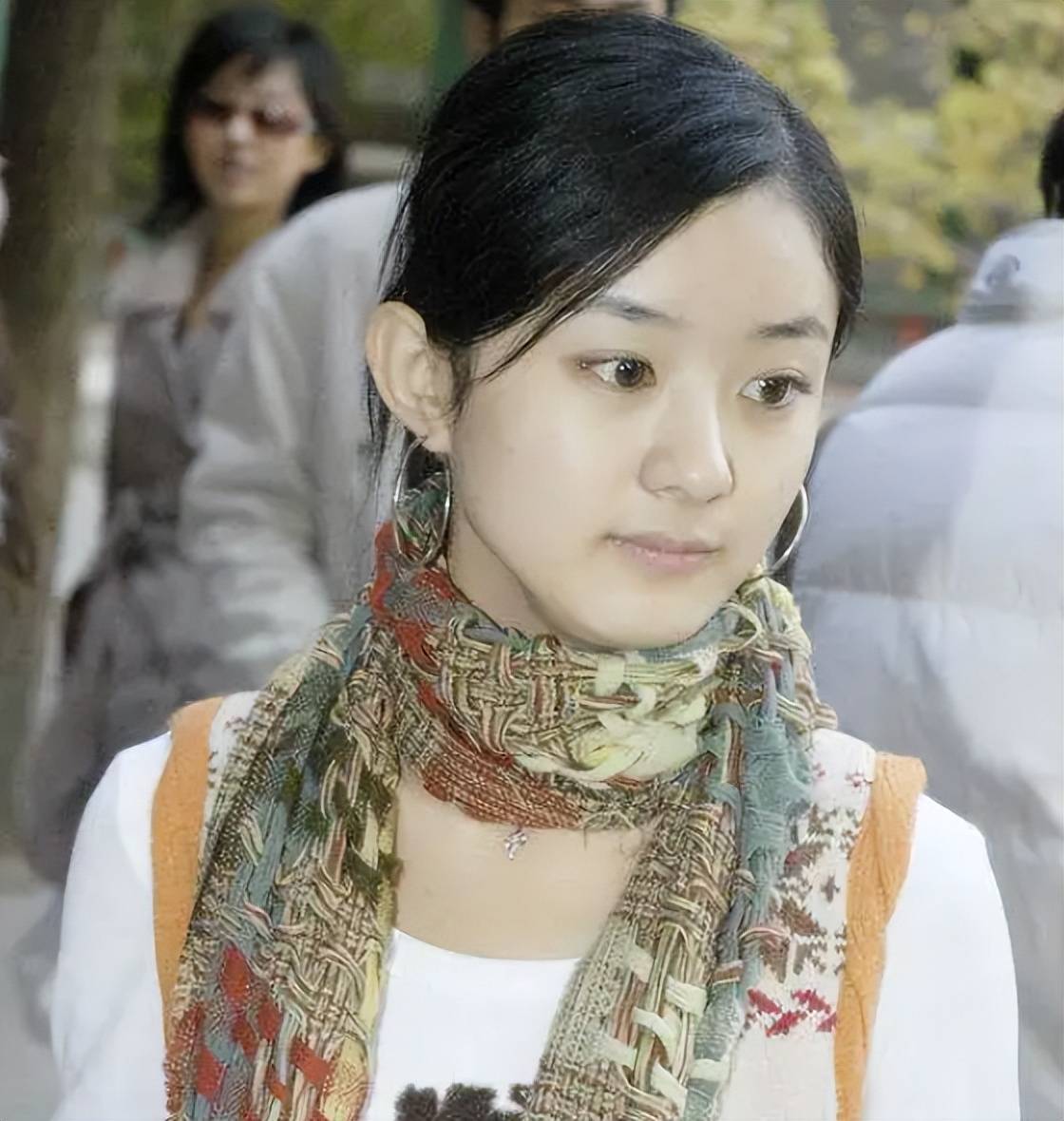 她本来就是以小脸著称,大学照片中脸像是削过骨一样,比合照同学脸整整小了一圈。