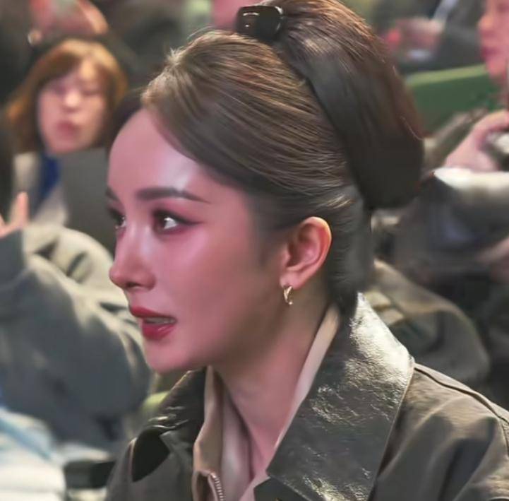 杨幂最新露面的视频中,用了一层厚厚的柔光滤镜,显得肤色洁白透亮。