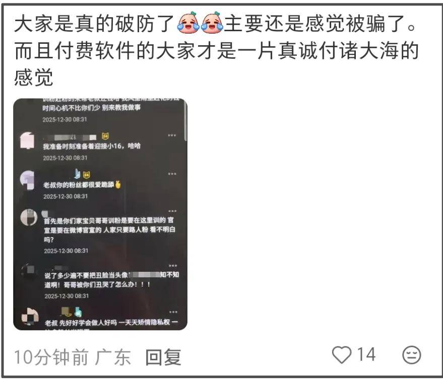有人表示他们不是恶意评论,不是妒忌的梦女,(留言)是因为训粉,从来没有在乎过粉丝;