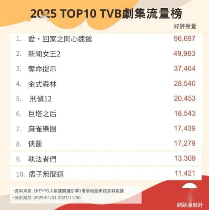 而据DailyView 统计,今年的10大TVB剧集流量榜如下,你看过哪几部呢?