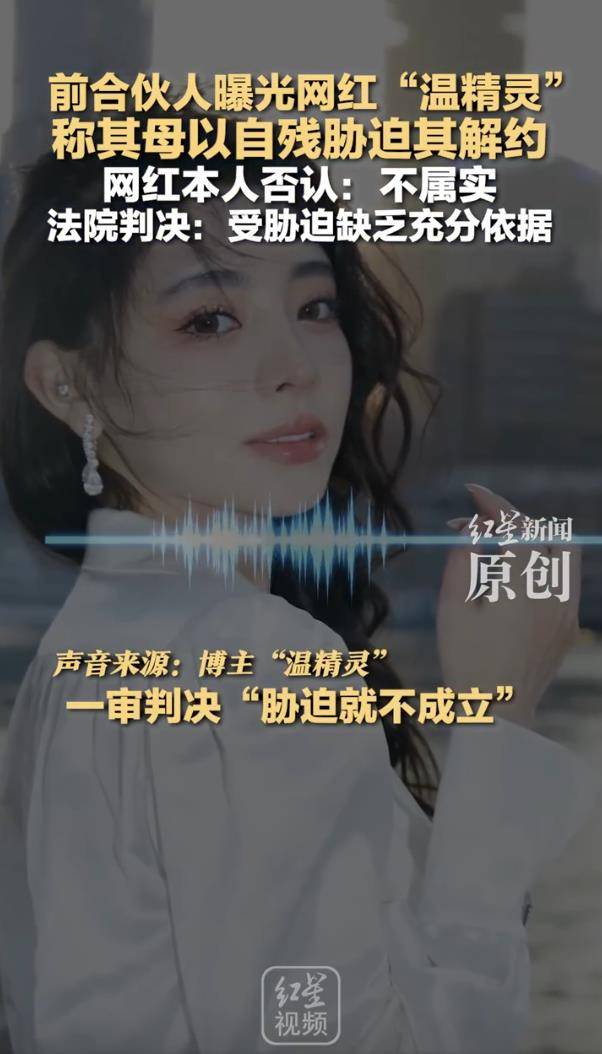 然而,事件很快迎来“法院判决版”的反转。12月30日,“温精灵”本人通过媒体强势回应,直接甩出一审、终审两份判决书,否认所有胁迫指控。根据判决书认定的事实,2022年7月5日双方协商解约时,确实发生了“温精灵”母亲自残及合伙人手背受伤的情况,伤者送医后返回工作室签署了协议。但关键在于,法院认为合伙人当时并未被限制人身自由,且在签署协议后的一个月内,主动分多次向“温精灵”支付了总计1400多万元的款项。因此,法院以“缺乏充分事实依据”为由,驳回了合伙人关于“受胁迫签订协议应予撤销”的请求。