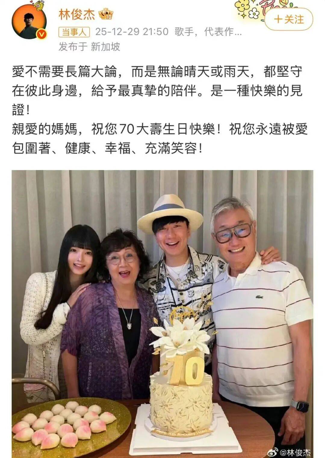 林俊杰最近晒照为父母庆生,没想到大家的关注点全跑偏了——照片里那位站在他身边的女生,被不少人认作是“准家庭成员”了。
