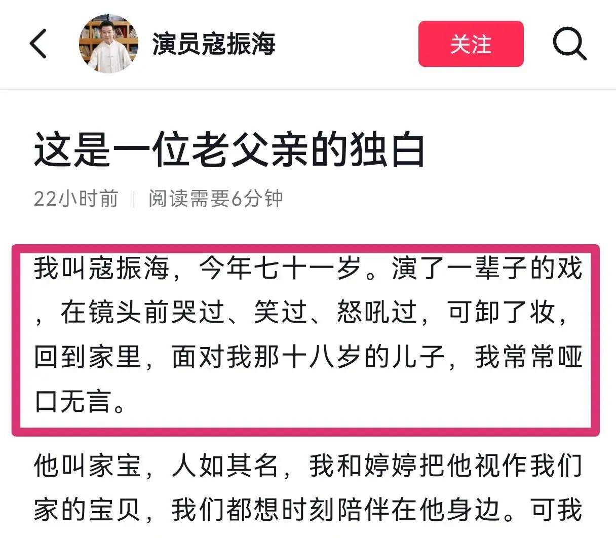 71岁的寇振海在社交账号发长文,首谈亲子关系。