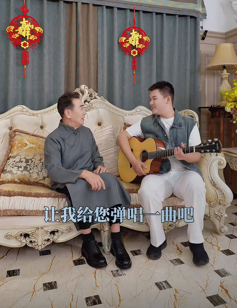 寇家宝拿出吉他、给老父亲寇振海弹唱,表达了对父亲的爱。