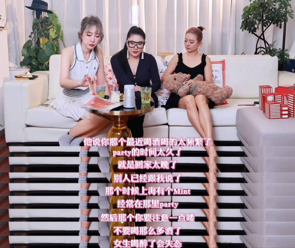 谢贤没有那么很严厉的说教,只是告诉她最近喝酒太频繁了,Party的时间也太长,回家有点晚了,女生喝醉了酒会失态,这样不好。
